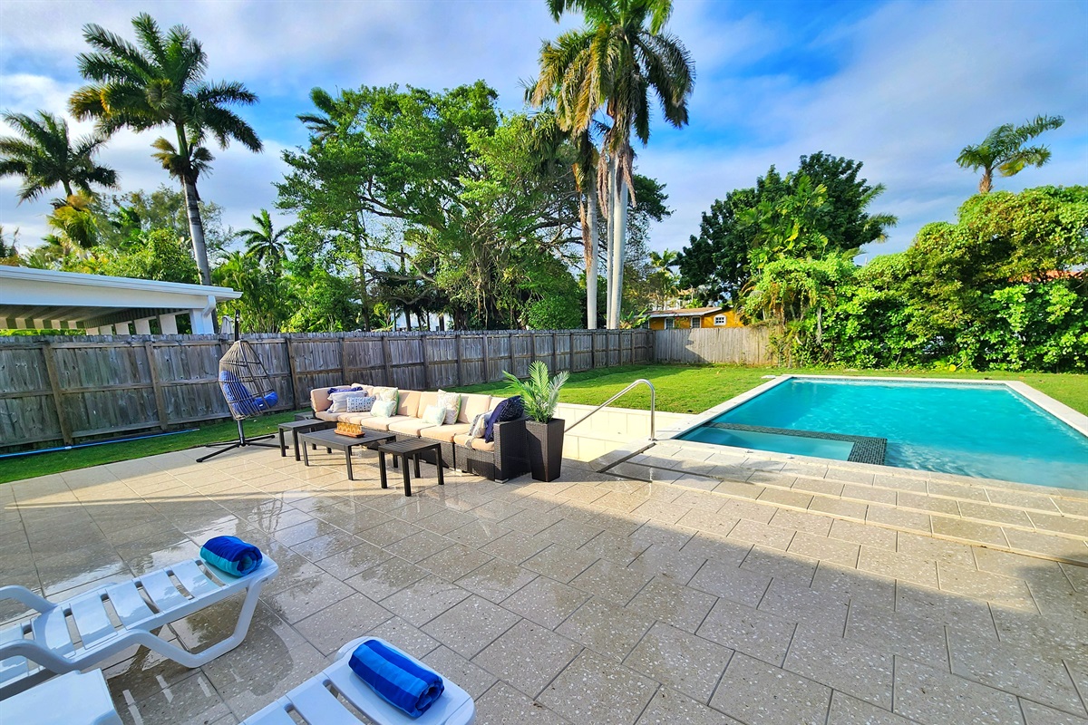 4 Bedrooms • 2 Bathrooms 2 Baths • Sleeps 1-10Soak up the sun in your private Miami paradise! This beautifully renovated 4-bedroom, 2-bath home features a brand-new swimming pool, spa, and children’s pool, all set in a lush, fenced-in tropical backyard. Relax on the screened-in patio and host unforgettable BBQs, or unwind after a day exploring Miami and Ft. Lauderdale. For extra fun, there’s a foosball table perfect for family or group game nights.